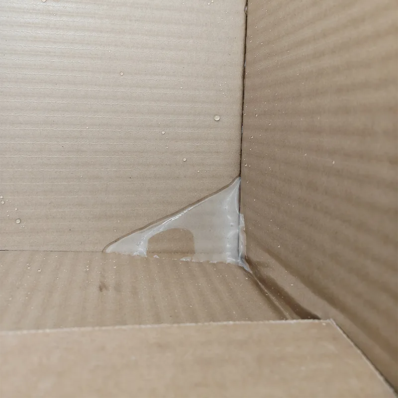 ● Til scenarier som køkkenopbevaring, transport på regnfulde dage og omsætning af friske råvarer, der kan støde på vand, er æskens ydre fuldt dækket af fødevaregodkendt gennemsigtig voksfilm. Utilsigtet spild af sojasovs eller vand kan nemt tørres af med en klud, og voksfilmen vil ikke skalle af eller tillade fugt at sive ind i papirlagene, hvilket får æsken til at blive blød. Selv ved kortvarige let regnstænk vil der ikke være vandmærker, og boksens hårdhed forbliver uændret.