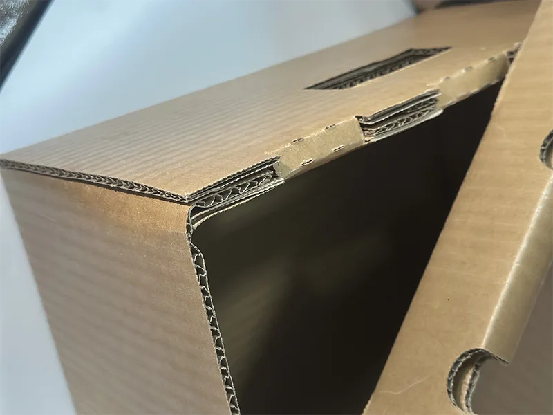 De vandtætte egenskaber ved store vandtætte bølgepapkasser sikrer stabil bæreevne til enhver tid. Traditionelle store papkasser er tilbøjelige til at absorbere og blødgøre fugt i fugtige omgivelser (70 % -90 % luftfugtighed), og deres bæreevne kan falde med mere end 50 % inden for 24 timer. Vandtætte bølgepapkasser bruger derimod komposit PE-film til at blokere fugtindtrængning. Selvom det opbevares i et fugtigt miljø i en måned, er den bærende dæmpning stadig mindre end 8%, hvilket undgår bærende svigt forårsaget af fugt og opfylder de bærende behov for langdistancetransport og langtidsopbevaring af store produkter.