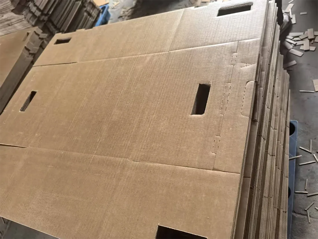 •Forstærket bærende design: Fortykkede bundpaneler og foldede kantsømme forhindrer nedbøjning eller kollaps under 30 kg belastning. Den korrugerede struktur fordeler også vægten jævnt, hvilket gør det sikkert at stable 4 til 5 kasser.