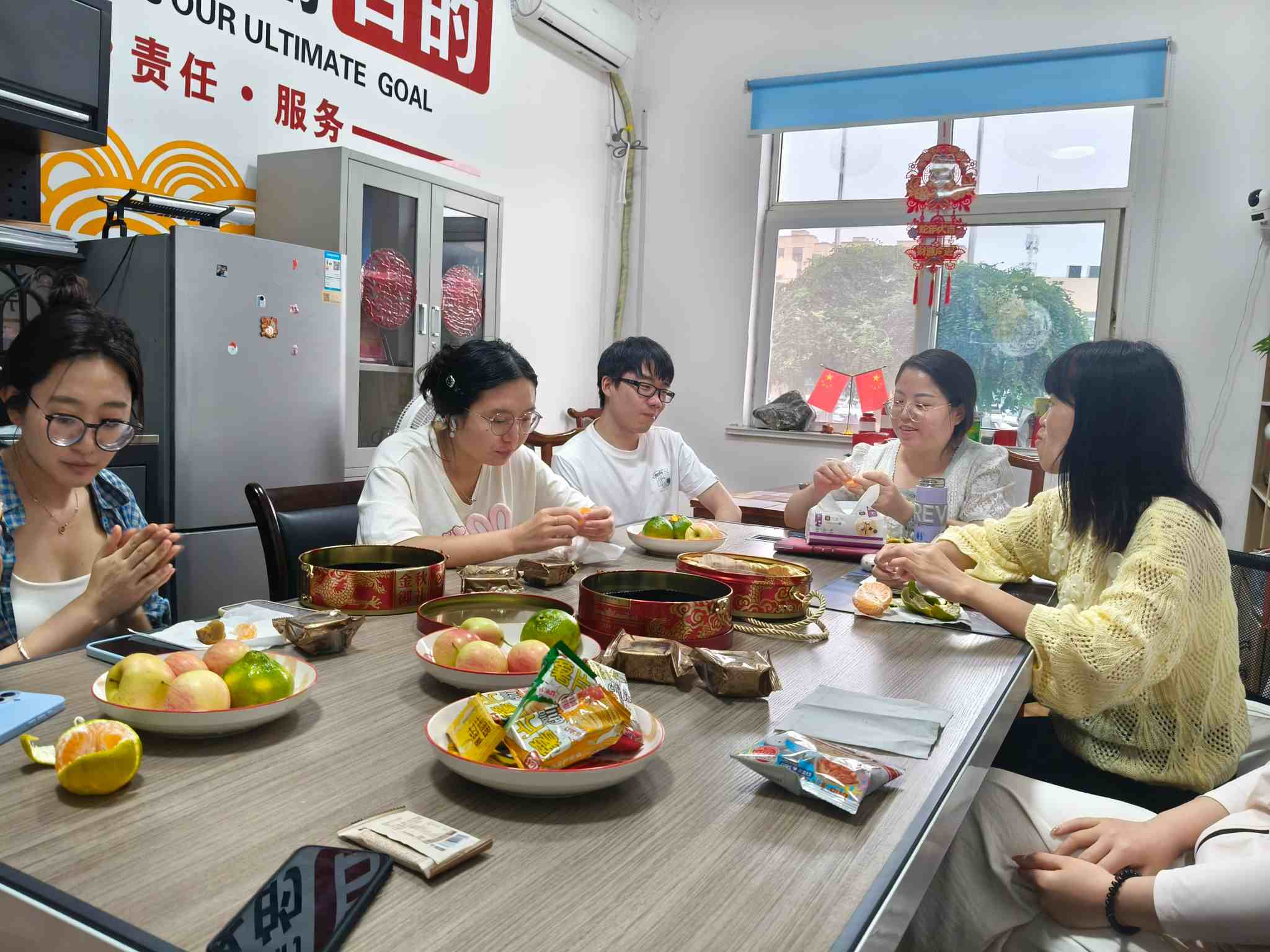 I eftermiddagschef Wu fraZemeijiaForberedt en lækker eftermiddagste, inklusive snacks og frugter. Alle nød en varm eftermiddagste -tid sammen.