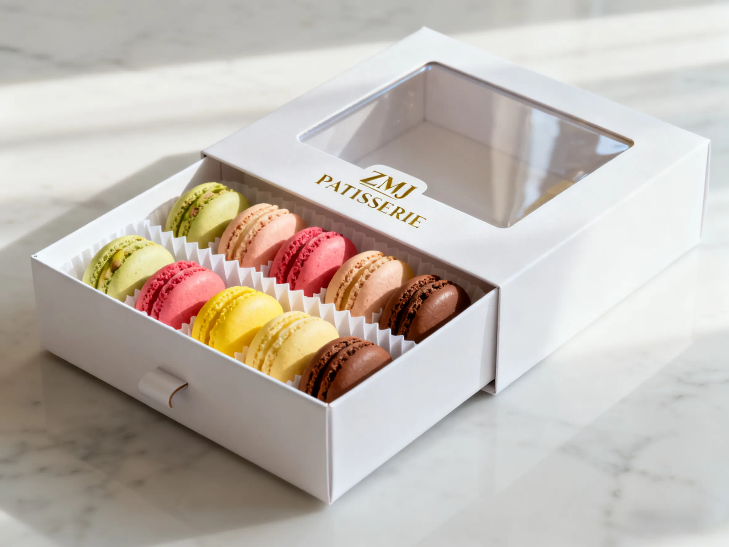 Vi ved alle, at macarons er delikate, lyse og luksuriøse. Så emballagen bør afspejle disse kvaliteter. Qingdao Zemeijia laver skræddersyede macaron-gaveæsker i høj kvalitet. Disse æsker beskytter macarons og viser deres klare farver. Vores æsker holder macarons i perfekt stand på vej til dig.